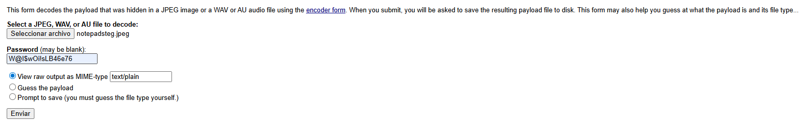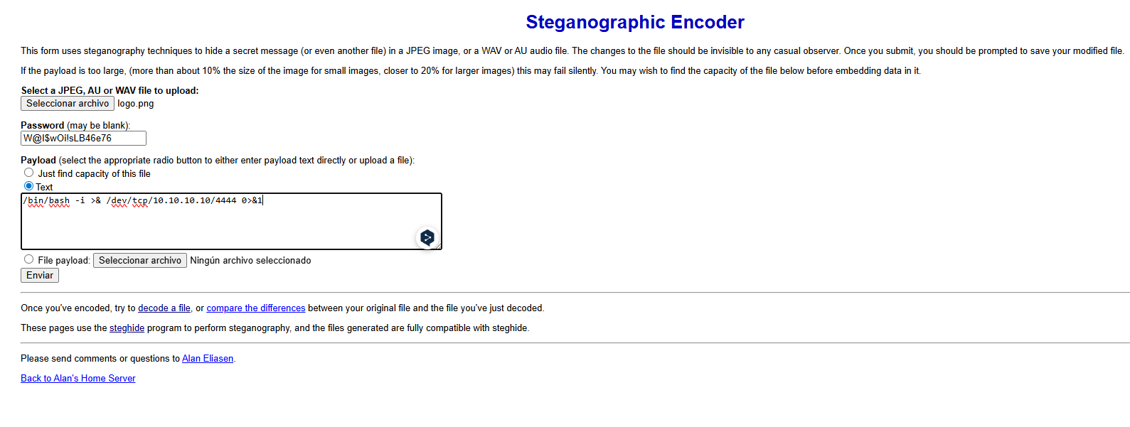 Para entender el concepto y poder profundizar un poco en él vamos a usar Steganography Tools. La idea es sencilla vamos a utilizar la web para subiendo un logo y con una contraseña introuducir un payload