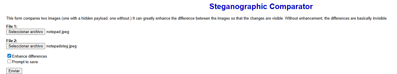 La propia web nos permite comparar dos archivos que se supone son identicos y detectar las diferencias