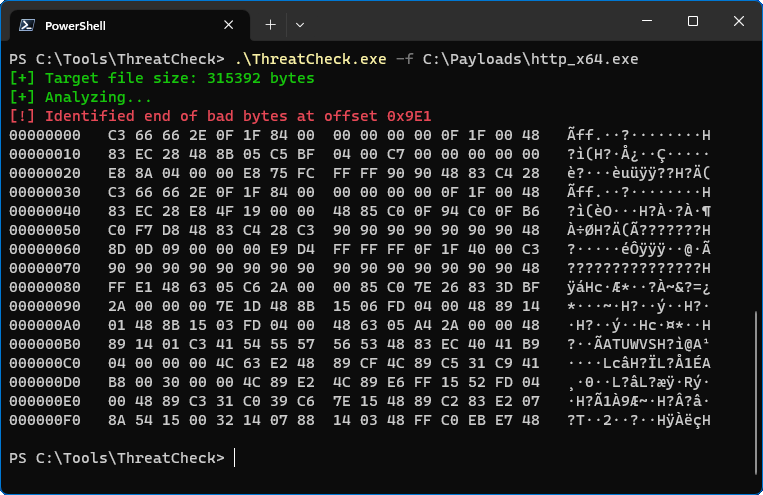 La detección estática es “as is”, son el conjunto de cosas que podemos analizar con el malware una vez cae. Es decir si a mi me cae en un disco el malware que puedo hacer para observar su contenido “sin tocarlo”. En ese sentido en el post anterior hemos visto dos métodos de los primigenios sobre la detección estática: el hash del fichero y el firmado. Ninguno de los dos son necesariamente resolutivos del problema, porque ningún método es resolutivo en si mismo y definitivo. Existen más métodos en los cuales profundizaremos como la entropía o las consecuciones de bytes firmados por soluciones de seguridad como maliciosos, lo cual también veremos en profundidad en adelante. La evasión de este método está muy documentado por Rasta Mouse y el proceso de limpieza a mano de estos bytes como documenta en offensivedefence.co.uk .