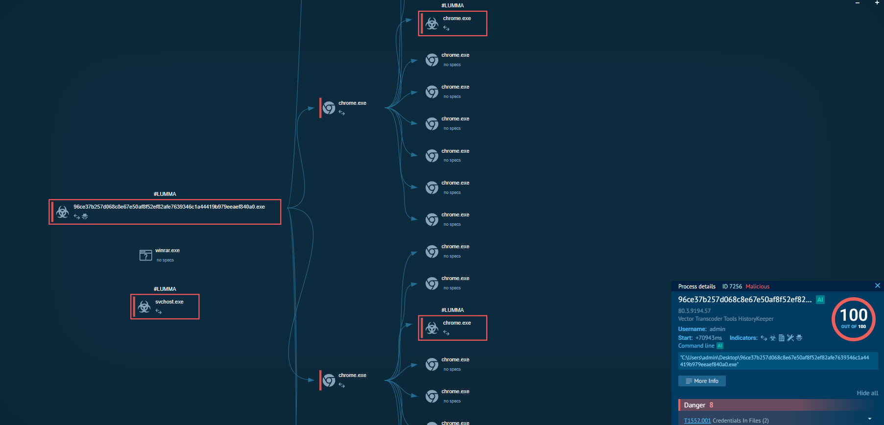 Son las que nacen del comportamiento del propio malware en su funcionamiento por tocar unos u otros componentes u ejecutar unas u otras accioens que se pueden considerar maliciosas o anómalas. Por ejemplo imaginemos que nuestro objetivo es realizar un dump del proceso LSSAS en el que se encuentran las credenciales del usuario mediante procdump: