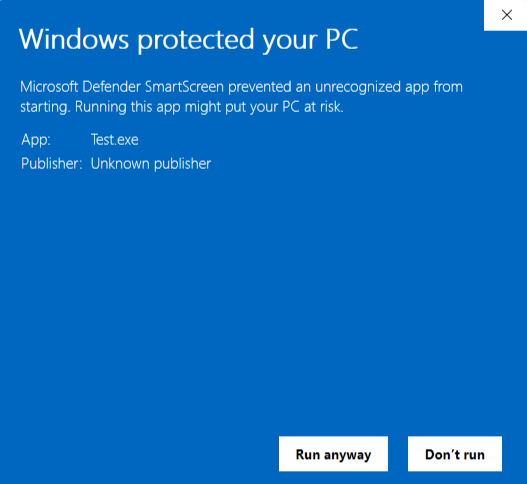 En muchas ocasiones puedes usar .LNK por ejemplo en vez del .exe dado que los formatos son diferentes y podemos evitar los controles de Smart Screen. Te paso un analisis de Unit 42 sobre malware usando lnk que vislumbra un poco como usarlo.