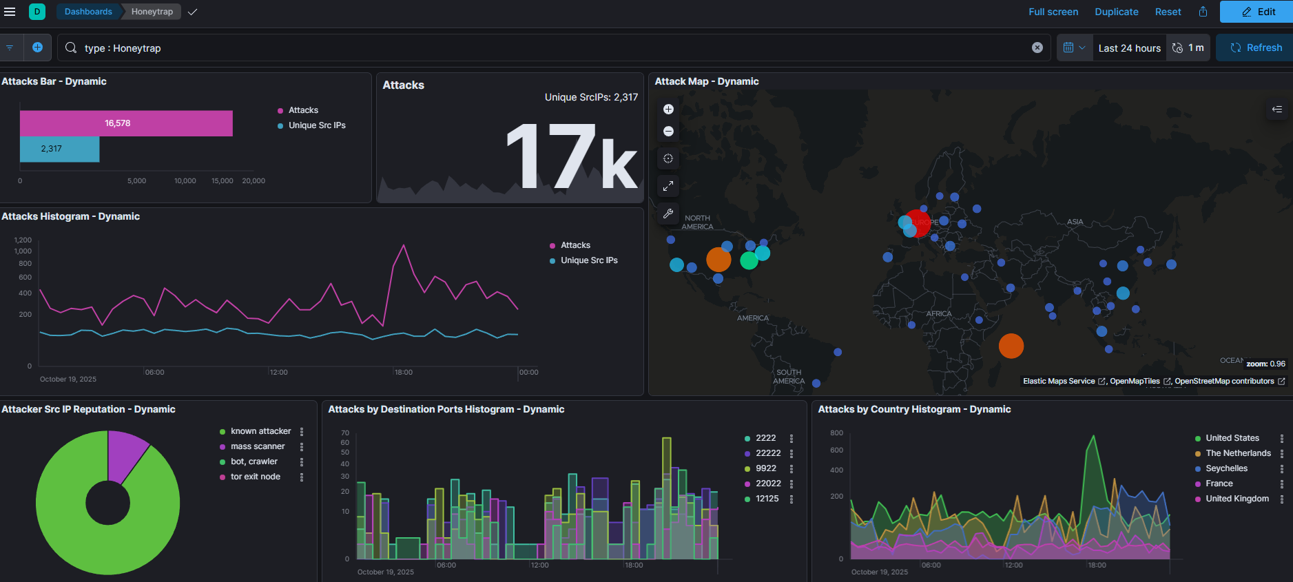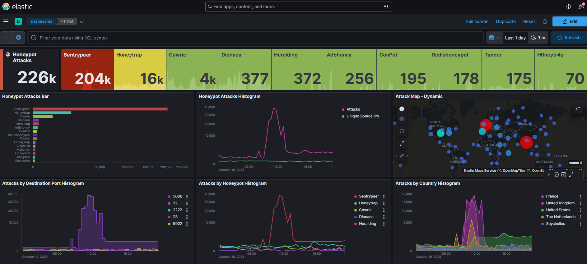 Hay un proyecto que me gusta mucho para explicar lo que es un Honeypot que es el proyecto T-Pot de Telekom Security. En su repositorio oficial teneís toda la información sobre como usarlo. Lo puedes montar en muchisimos sistemas, hasta en una Raspberry, y es basicamente un repositorio que mezcla una barbaridad de honeypots de diferentes tipos y te genera una serie de herramientas de monitorización. En mi caso para enseñaroslo he montado un linode cumpliendo las specs que marca el repositorio.