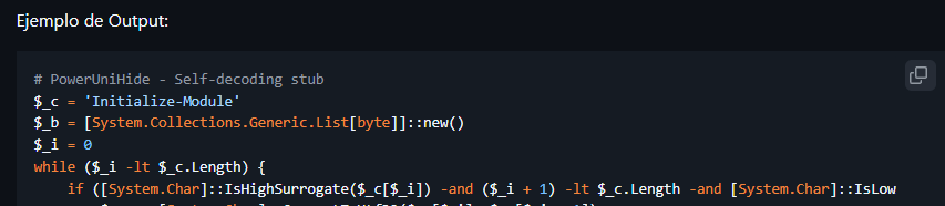 De hecho para hacer más creible este hecho podeís ir al propio Readme.md PowerUniHide en el cual en el apartado “Ejemplo de Output” he colocado el código con el “Hello, World from Unicode!”, de manera que si pulsas en el típico botón que te lleva al portapapeles un comando te llevas oculto el payload 😈 compruebalo por ti mismo!